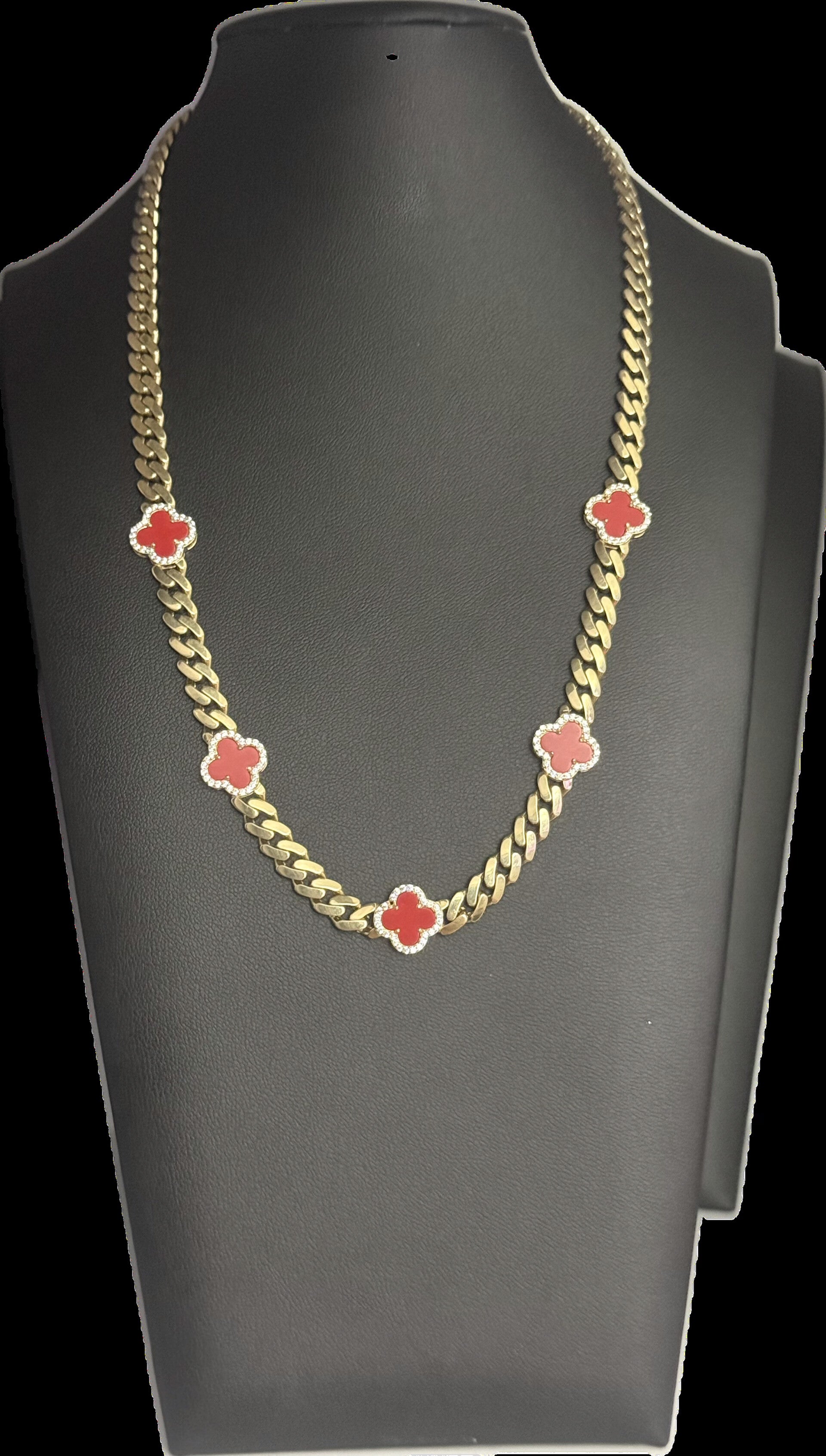 10k red clover monaco style chain 7mm size 20 inch